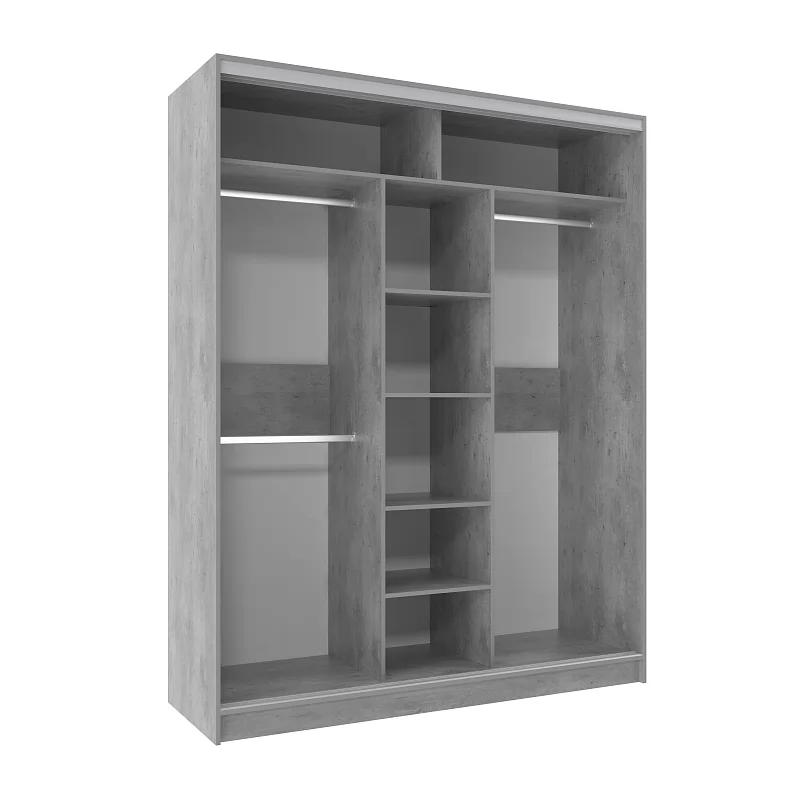 Шкаф-купе Домашний шириной 1800 мм подойдет для любой комнаты: спальни, гостиной, прихожей, детской. Продуманное внутреннее наполнение шкафа состоит из полок для белья и трех стационарных штанг длиной 635 мм. Разная высота крепления штанг позволяет держать в порядке короткие пиджаки, брюки и длинные вещи отдельно друг от друга. В изготовлении шкафа-купе Домашний использована система стальных профилей «Найди». Цвет системы подобран в цвет основного декора шкафа-купе. В комплектацию шкафа-купе Домашний входит шлегель - щётки с упругим ворсом, которые смягчают удары дверей при закрывании, а также защищают вещи от попадания пыли.