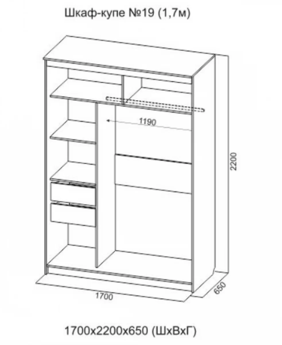 | Размер (ВхШхГ): | 2200х1700х600 мм |