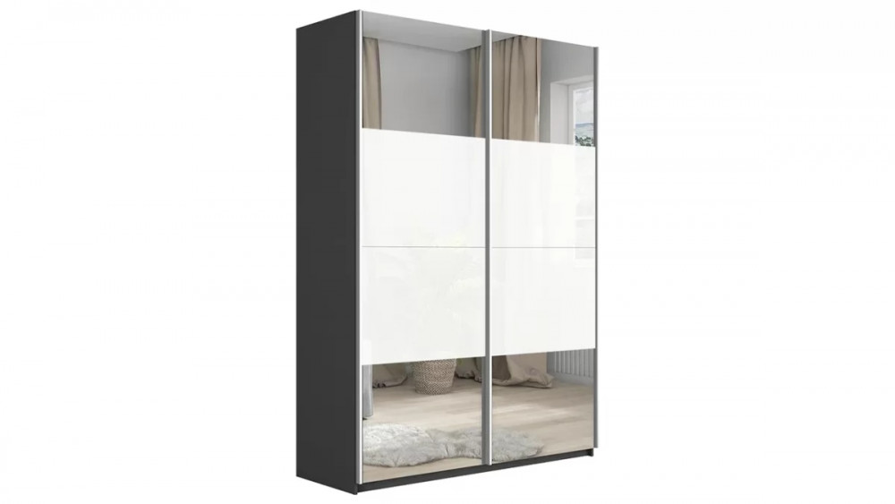 Шкаф-купе 2-х дверный «Траст» Серый диамант, Зеркало/Стекло белый глянец