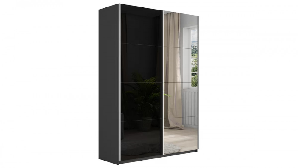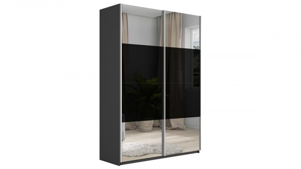 Шкаф-купе 2-х дверный «Траст» Серый диамант, Зеркало/Стекло черный глянец