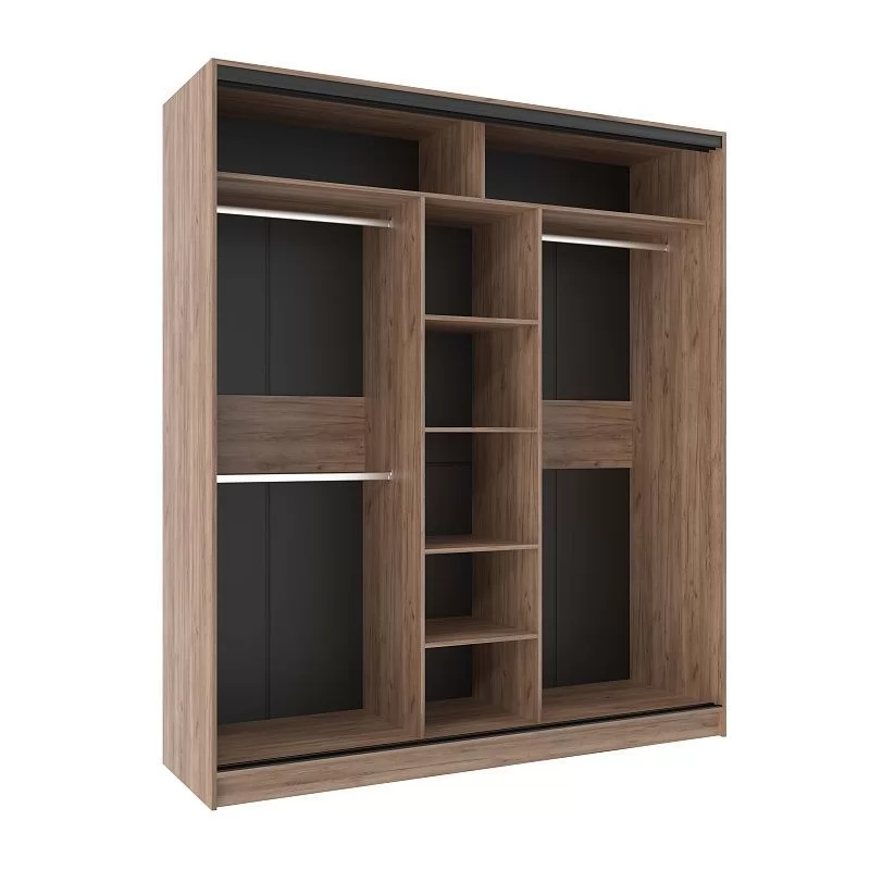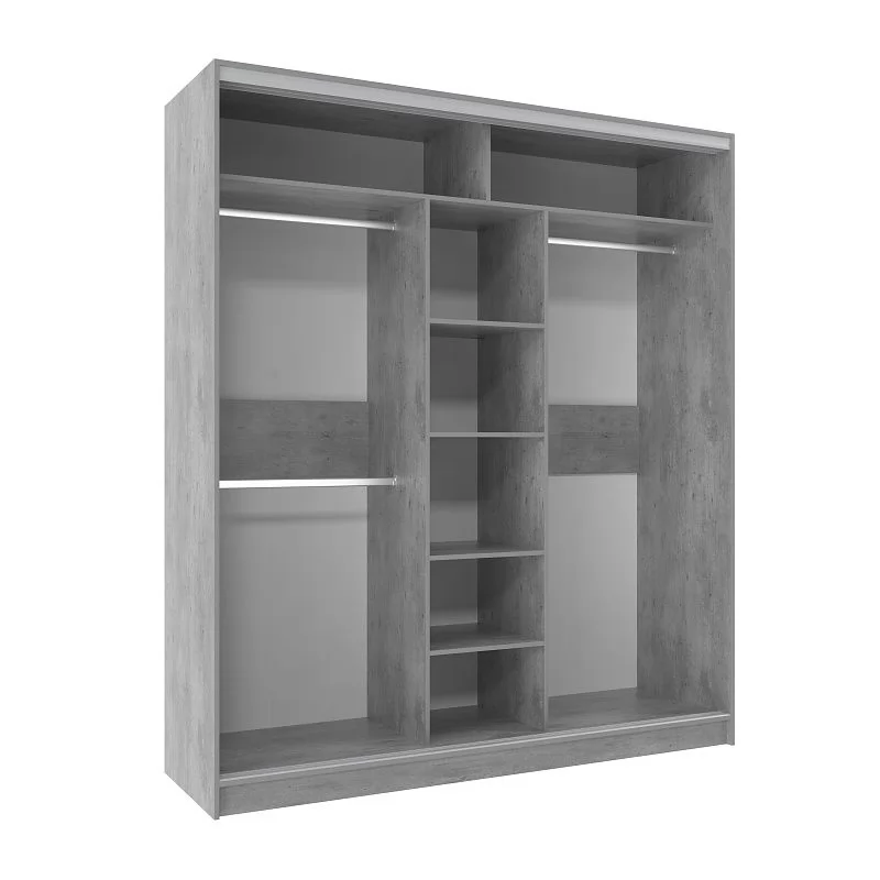 Продуманное внутреннее наполнение шкафа состоит из стеллажа для белья и стационарной штанги длиной 725 мм. На ней поместится как минимум 10 плечиков с верхней одеждой. В шкафу-купе используется стальная система "Найди". Применяемый в ее изготовлении металл обеспечивает мебели необходимую прочность и долговечность. По краю дверей шкафа-купе защитная пленка препятствует повреждению красочного слоя металлического профиля. После установки шкафа ее можно удалить.В комплектацию входит шлегель - щётки с толстым ворсом, которые устанавливаются на профиль дверей шкафа-купе и приглушают удары дверей при закрывании, а также способствуют пыленепроницаемости. На скрытых полкодержателях Titus полки шкафов-купе крепятся жестко. Возможна регулировка полок по высоте. Зеркальная дверца с обратной стороны проклеена специальной защитной пленкой, которая предотвратит от падения осколков, если она разобьется.