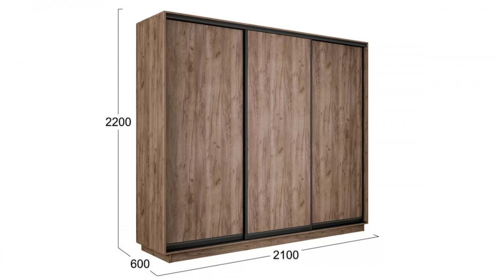 Шкаф-купе 3-х дверный «Румер-2» Дуб Крафт Табачный, Черный профиль
