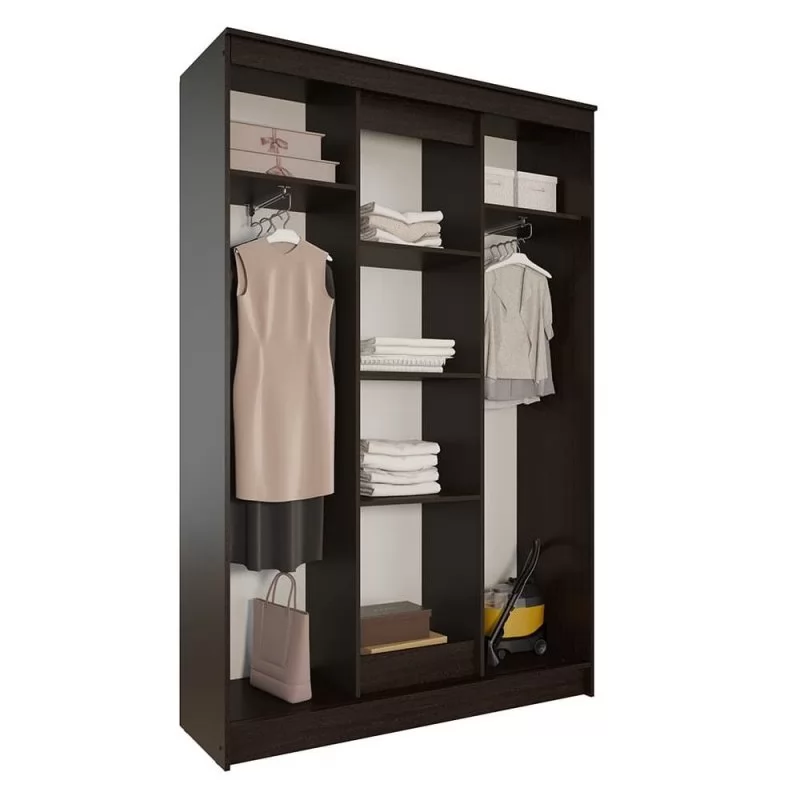 Шкаф имеет 2 секции для одежды со штангой и секции с полками для белья.