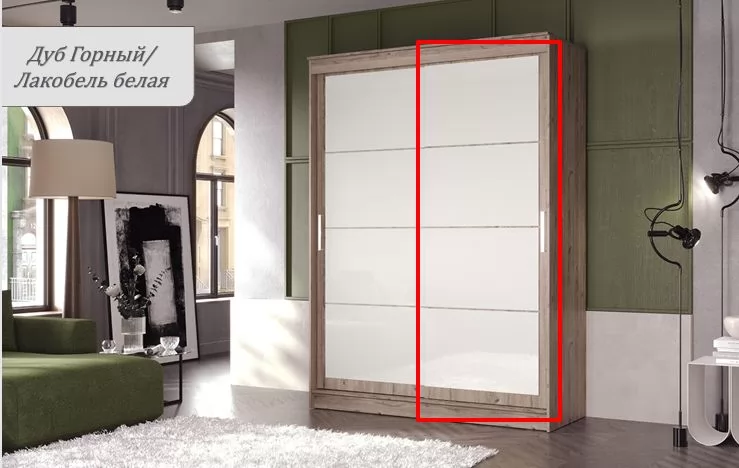 Шкаф-купе ГРАНД 1 1,6 Фасад Лакобель ЛДСП Дуб горный/Лакобель Белая