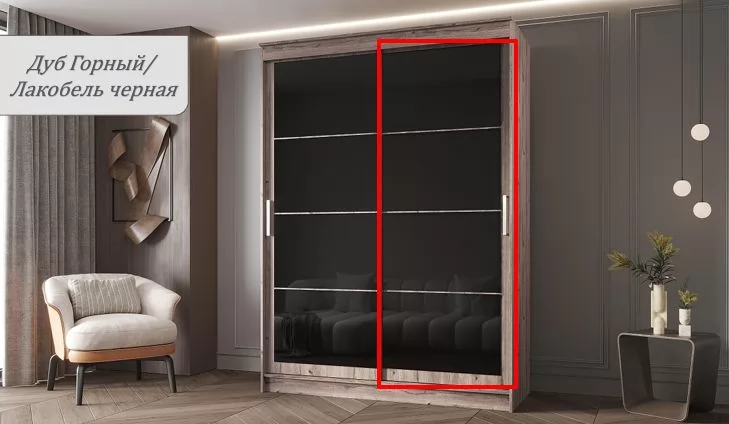 Шкаф-купе ГРАНД 1 1,6 Фасад Лакобель ЛДСП Дуб горный/Лакобель Чёрный