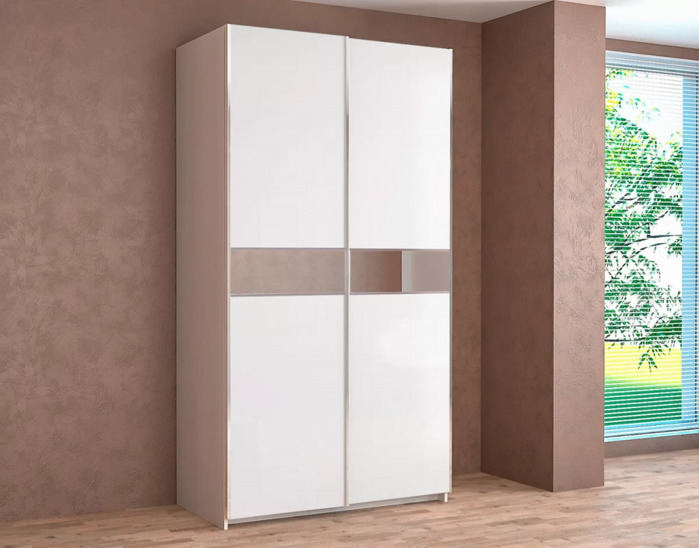 Шкаф-купе Иннэс-5 двухдверный с зеркальными вставками 2000 мм Белый глянец