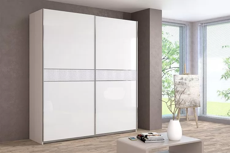 Шкаф-купе Иннэс-5 двухдверный с зеркальными вставками 2000 мм Белый глянец