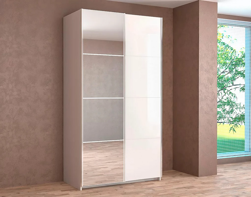 Шкаф-купе Иннэс-5 двухдверный с зеркалом 2000 мм Белый глянец