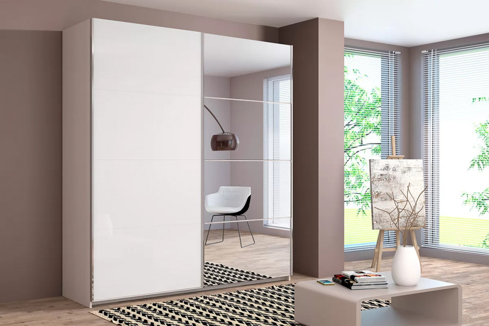 Шкаф-купе Иннэс-5 двухдверный с зеркалом 2000 мм Белый глянец