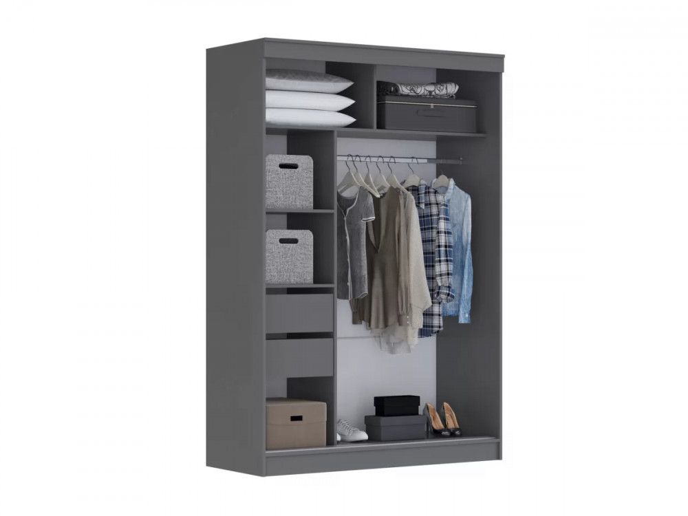 Стильный и современный внешний вид, который впишется в любой интерьер – от классики до минимализма. Просторные, вместительные полки, удобные штанги для одежды и дополнительные модули для обуви, аксессуаров или постельного белья. Долговечные материалы, устойчивые к царапинам и влаге, обеспечивают шкафу долгий срок службы. Удобная система дверей-купе экономит пространство и обеспечивает легкий доступ ко всему содержимому. Большой выбор цветовых решений.