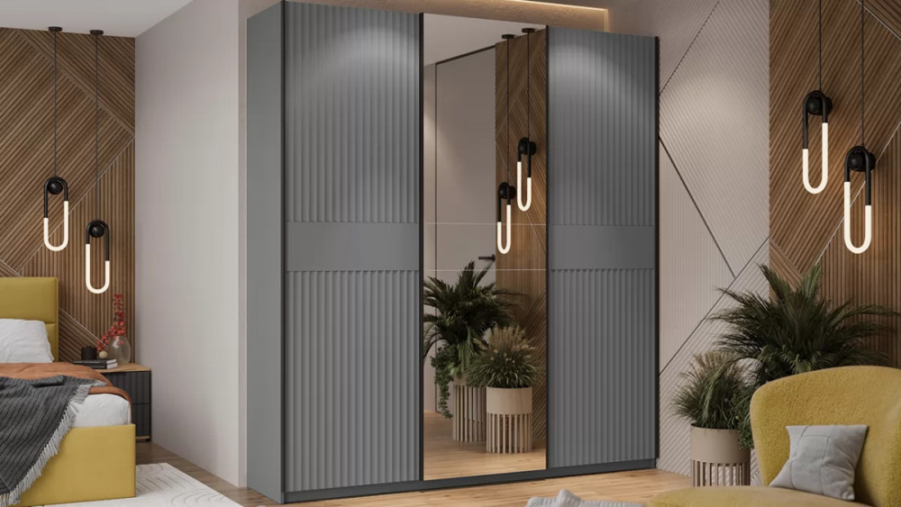 Шкаф-купе SLIM трехдверный BS22-6.3D, дуб вотан/темно-серый/профиль черный