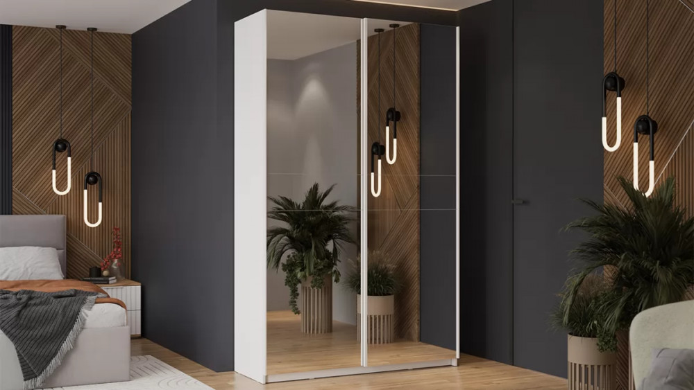 Шкаф-купе с 2 зеркальными дверями «Оскар» Ручка белая, Белый снег