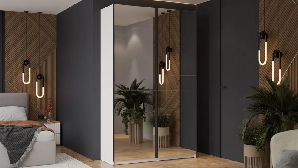 Шкаф-купе с 2 зеркальными дверями «Оскар» Ручка черная, Белый снег