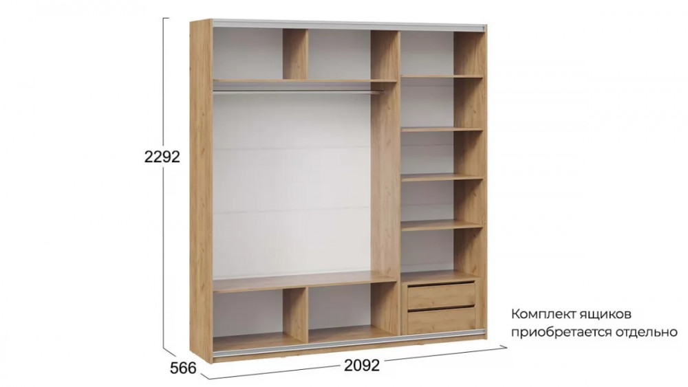 Шкаф-купе 2-х дверный «Румер-2» Дуб Крафт Табачный, Зеркало, Черный профиль