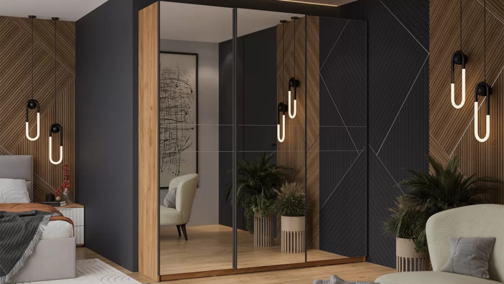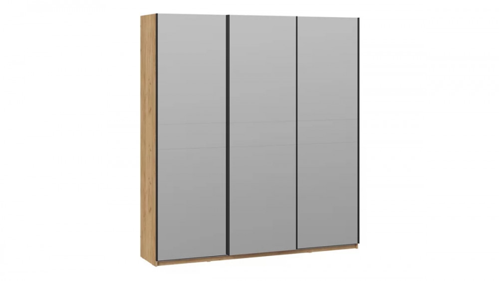 Шкаф-купе с 3 зеркальными дверями «Оскар» Ручка черная, Дуб Крафт золотой
