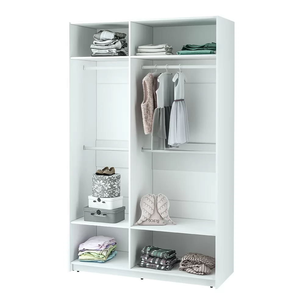 -внутренняя комплектация изделия состоит из отделений для одежды на вешалках, имеющих два уровня штанг,