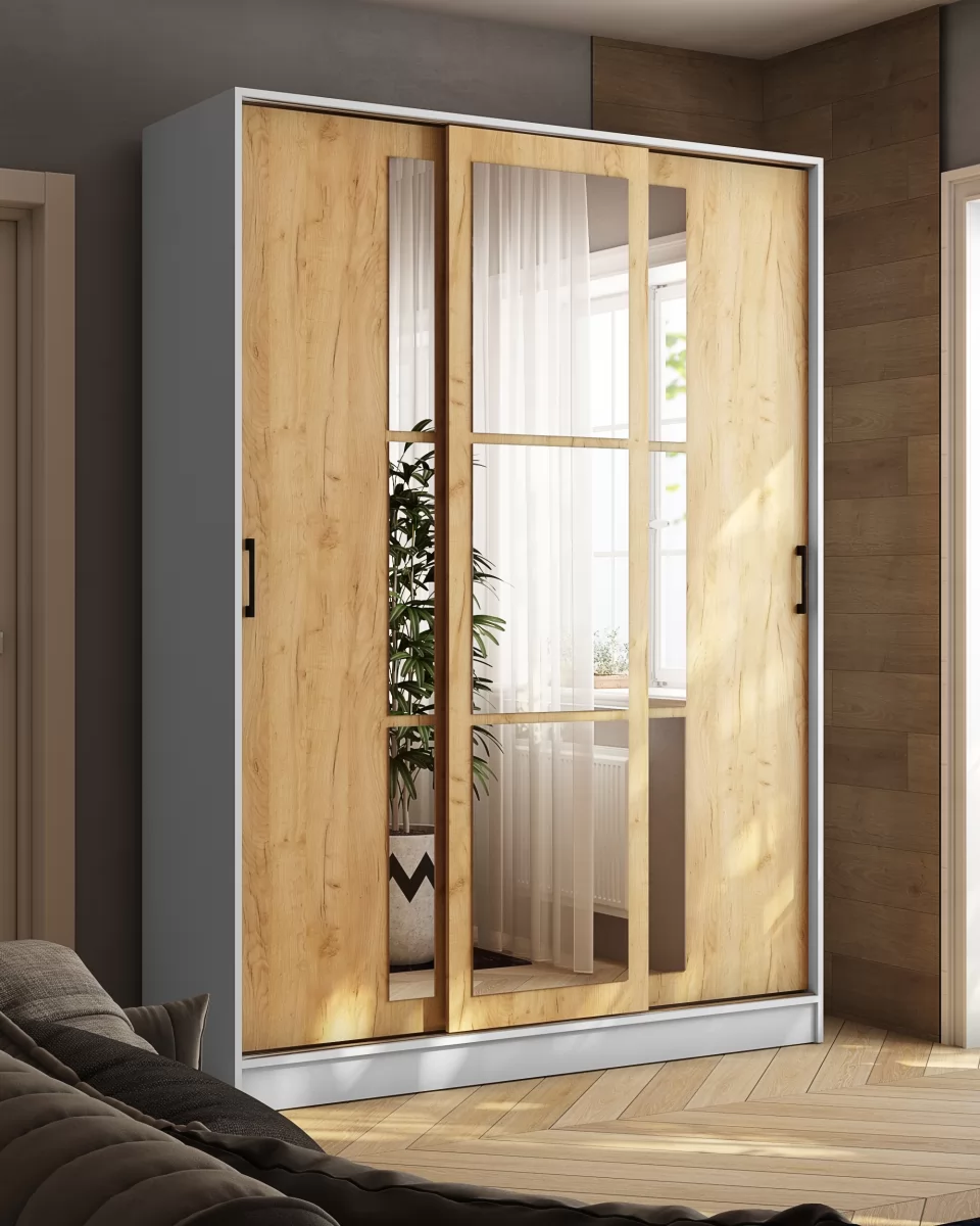 Шкаф-купе с 3 зеркальными дверями «Оскар» Ручка серебро, Дуб Крафт золотой