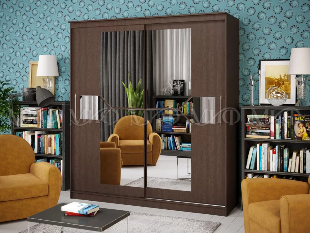 Шкаф-купе с 2 зеркальными дверями «Оскар» Ручка серебро, Серый графит