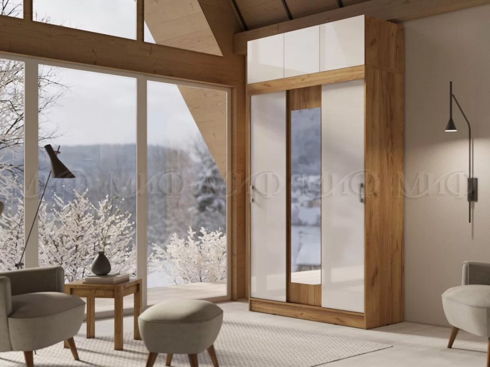 Шкаф-купе Иннэс-5 двухдверный 1400 мм Бодега белая/Экокожа