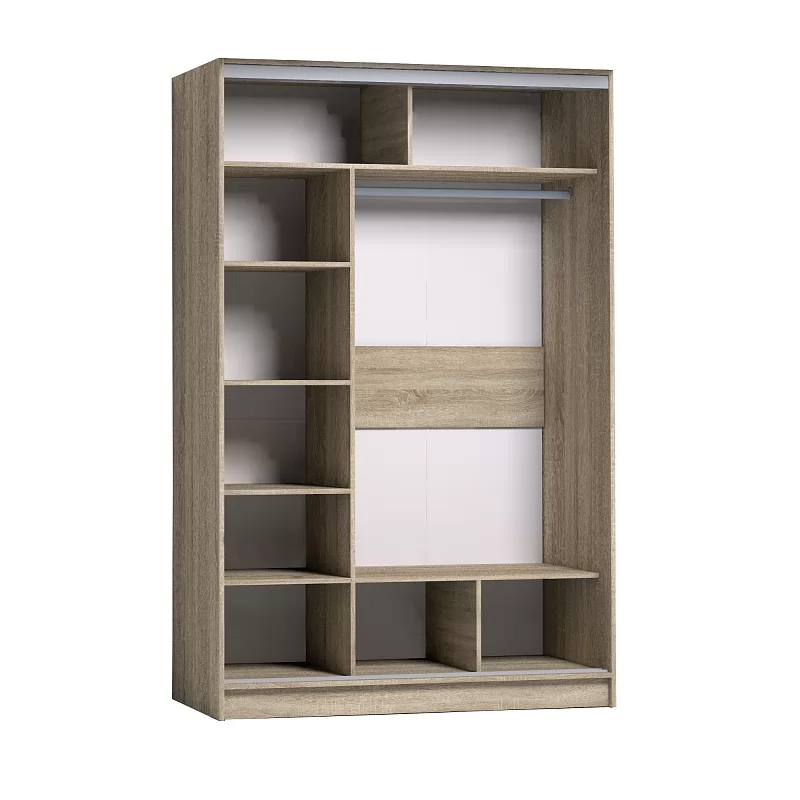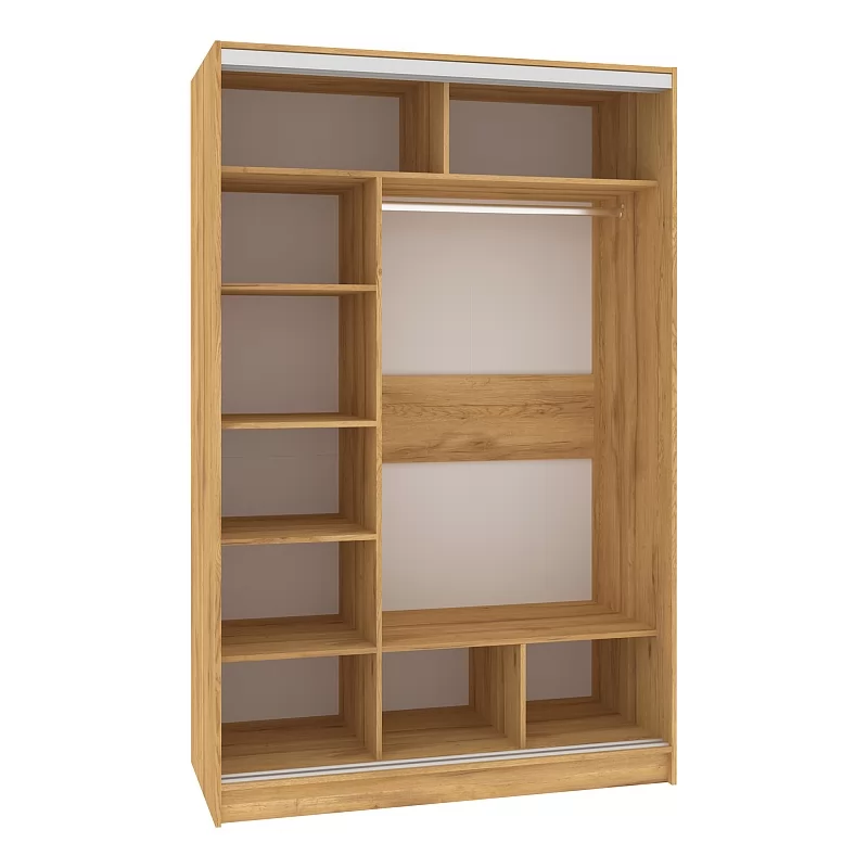 Шкаф-купе STRIKE шириной 1350 мм подойдет для любой комнаты: спальни, гостиной, прихожей, детской. Продуманное внутреннее наполнение шкафа состоит из стеллажа для белья, стационарной штанги длиной 843 мм. В изготовлении шкафов-купе STRIKE использована прочная стальная система треков «Найди» цвета Металлик. Двери шкафов дополнены ручками из массива и шлегелем, который смягчает удары дверей при закрывании, а также защищают вещи от попадания пыли. Благодаря скрытым полкодержателям полки жестко крепятся на необходимой высоте.