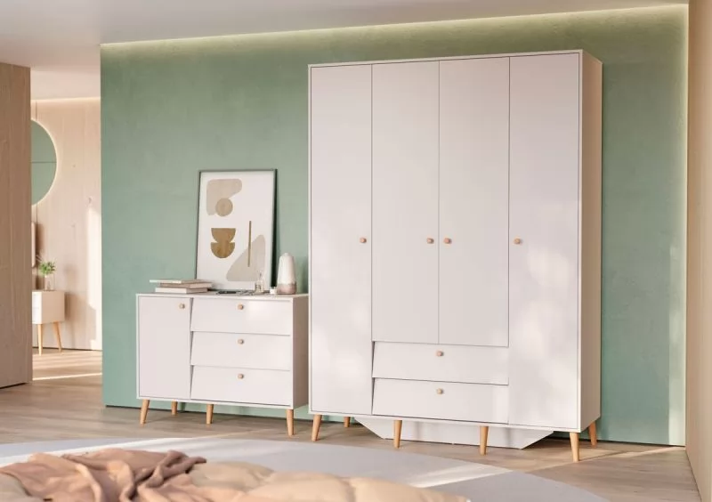 Шкаф в спальню с зеркалом MOBI белый REG/75