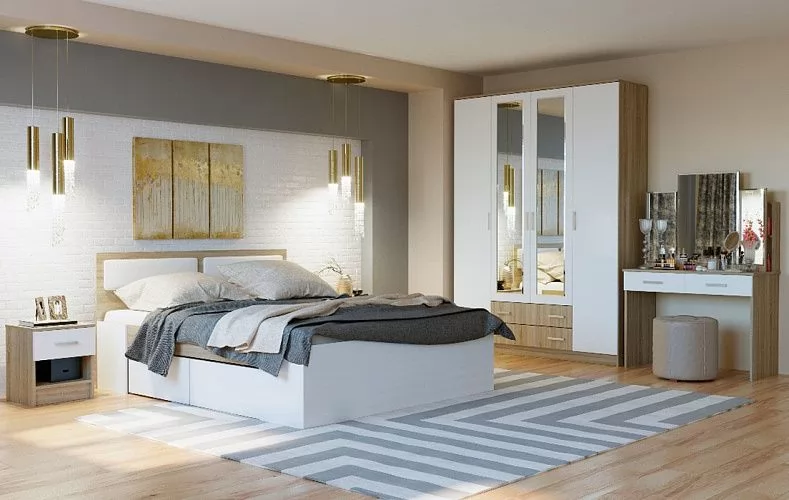БЕАТРИС КР 1600 Кровать (с/м 1600*2000мм), дуб сонома/белый глянец НАСТИЛ