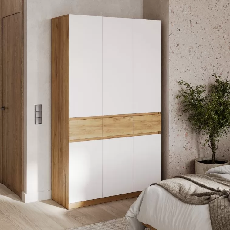 БОСТОН ЛАЙТ Шкаф ШК-003 (3-ств.) ЛДСП (Стиль) (ОР81) дуб крафт золотой/Белый