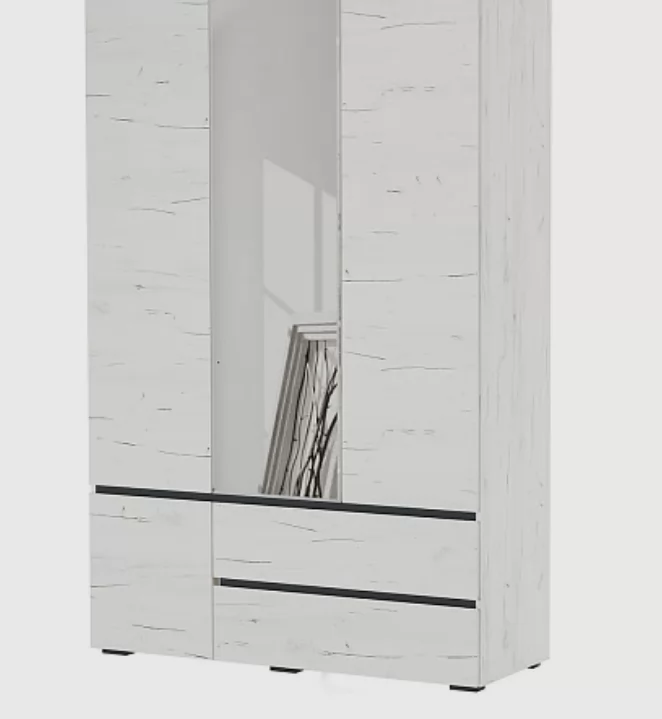 ГРЕТТА Шкаф 4С2Я с 1 зерк. (ш1300*г507*2120мм), ЛДСП дуб крафт белый-антрацит/ЛДСП дуб крафт белый