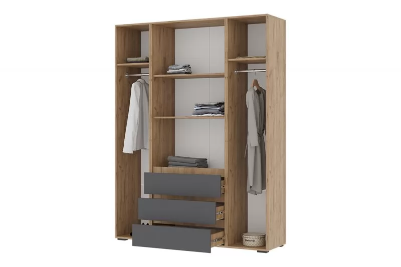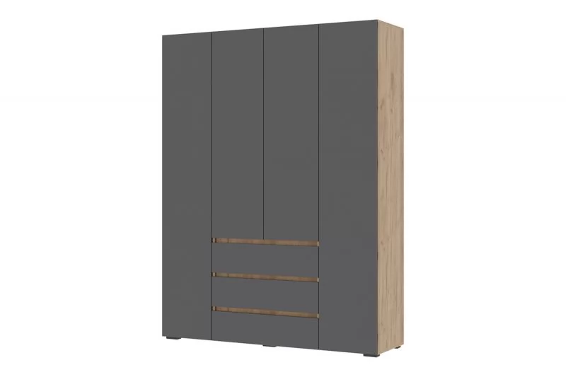 ХЕЛЕН ШК05 Шкаф 4х ств., 3ящ., (ш1600*г460*в2080мм), Дуб Крафт Золотой/Серый Графит