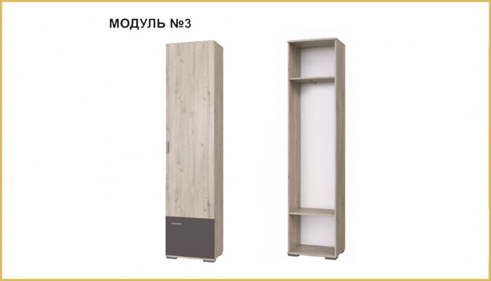 Дверцы распашные. Внутри находится выдвижная штанга для вешалок и секция для обуви.