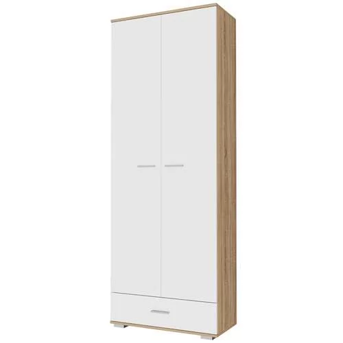 ИТАЛИЯ ШК1Я-800 Шкаф 2дв, 1ящ (ш800*г370*в2152мм), дуб сонома/белый глянец (2уп)