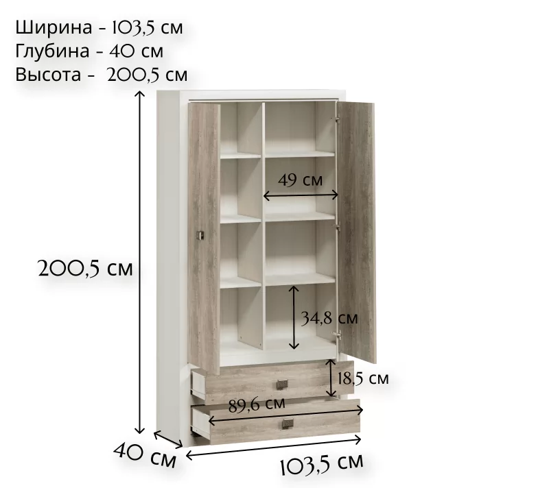 | Размер (ШxВxГ): | 1035x2005x400 мм |