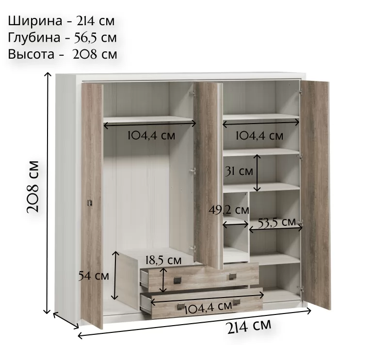 | Размер (ШxВxГ): | 2140x2080x565 мм |