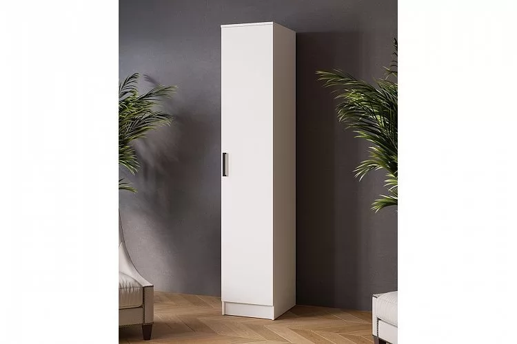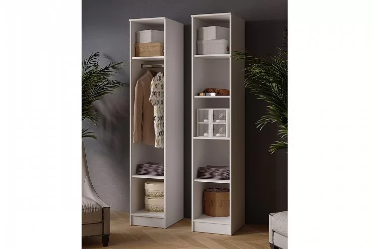 Пенал Ларс имеет два варианта внутреннего наполнения - полки или штанга. Фурнитура: опоры – подпятники пластиковые, черные. Ручки пластиковые, черные.