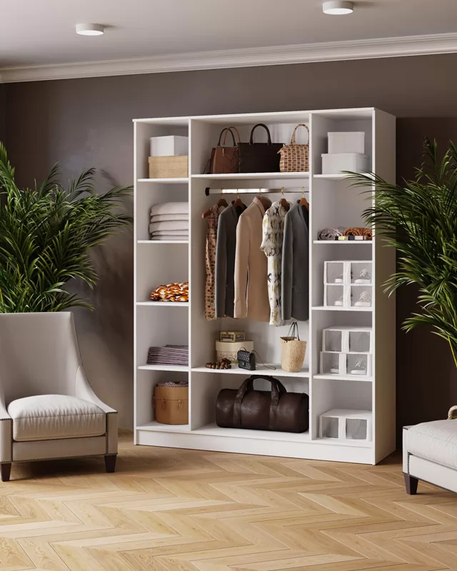 ЛАРС Шкаф комбинированный 1,6 без зеркал (ш1600*г510*в2100мм), ЛДСП Белый