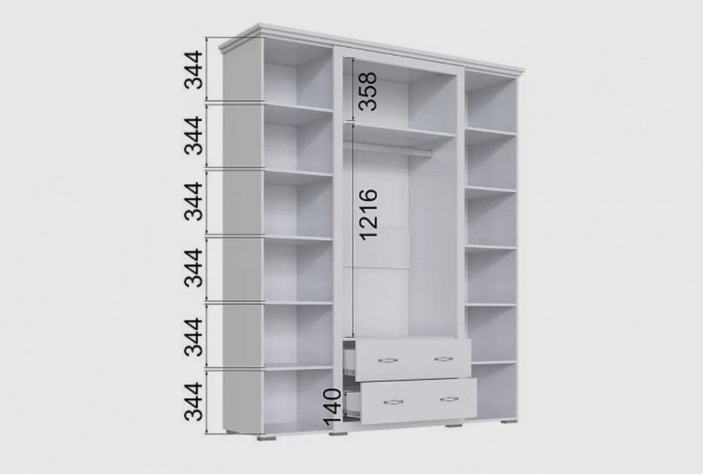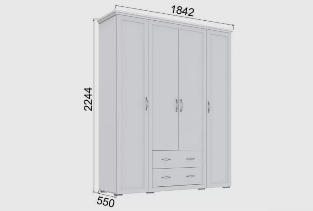 ЛЕНЬЯНА Шкаф 4х дв. 2ящ. (ш1842*г550*2244мм), Белый