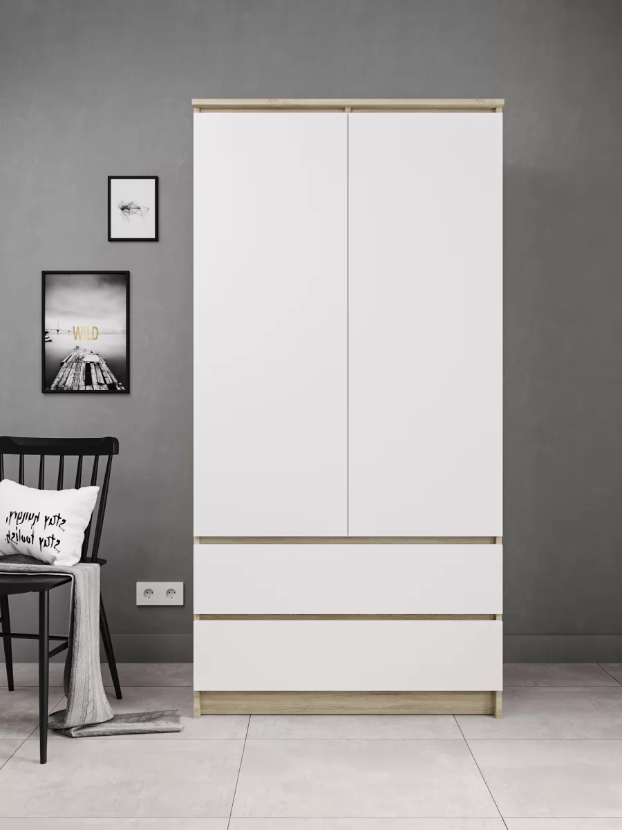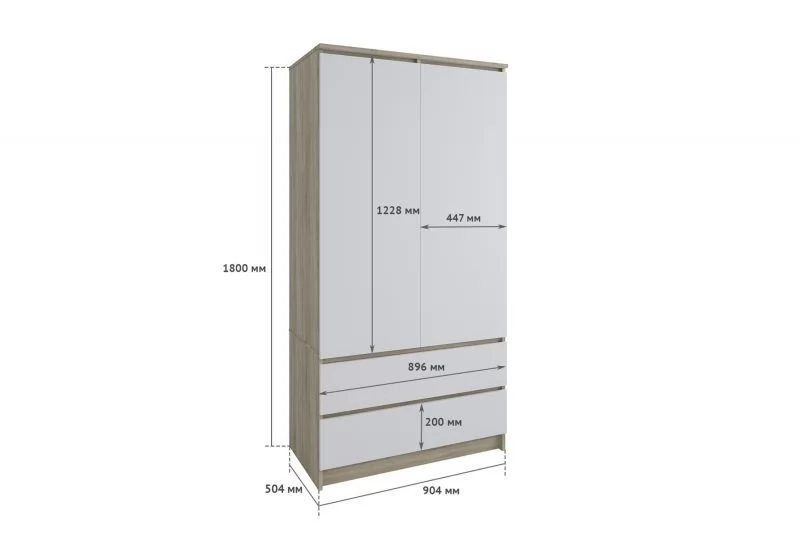 МОРИ МШ 900.1 Шкаф с 2мя дв и 2мя ящ. (ш904*г504*в1800мм), ЛДСП Сонома / Белый (МП/4)