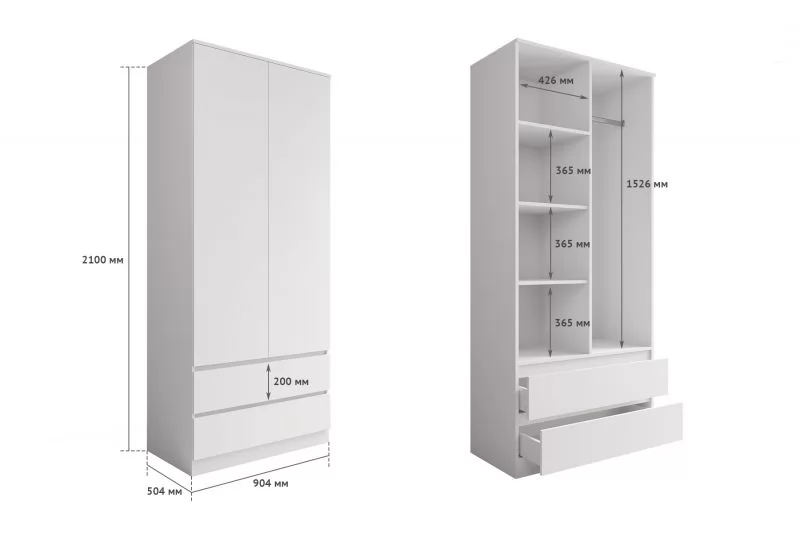 МОРИ МШ 900.2 Шкаф с 2мя дв и 2мя ящ. ВЫСОКИЙ (ш904*г504*в2100мм), ЛДСП белый (МП/3)