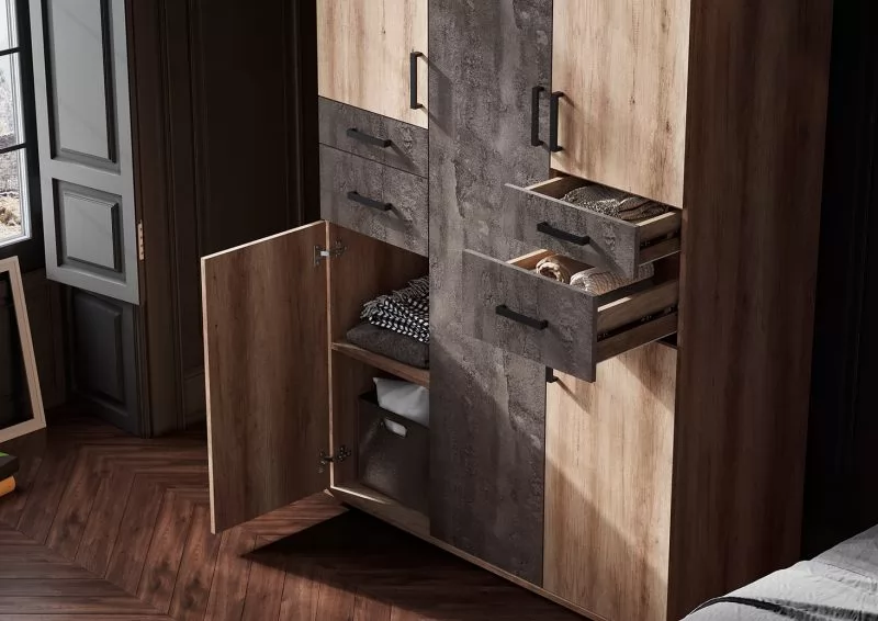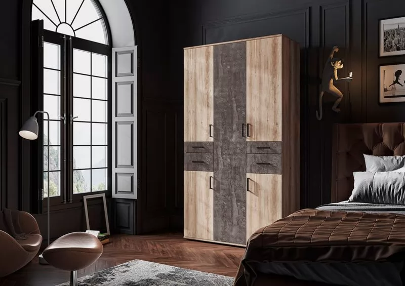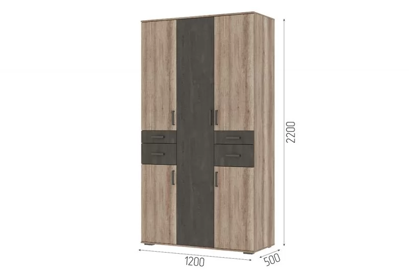 НЕЛЬСОН ШК-03 Шкаф (ш1600*г500*в2200мм), ЛДСП Дуб каньон/Дуб каньон - Желез камень