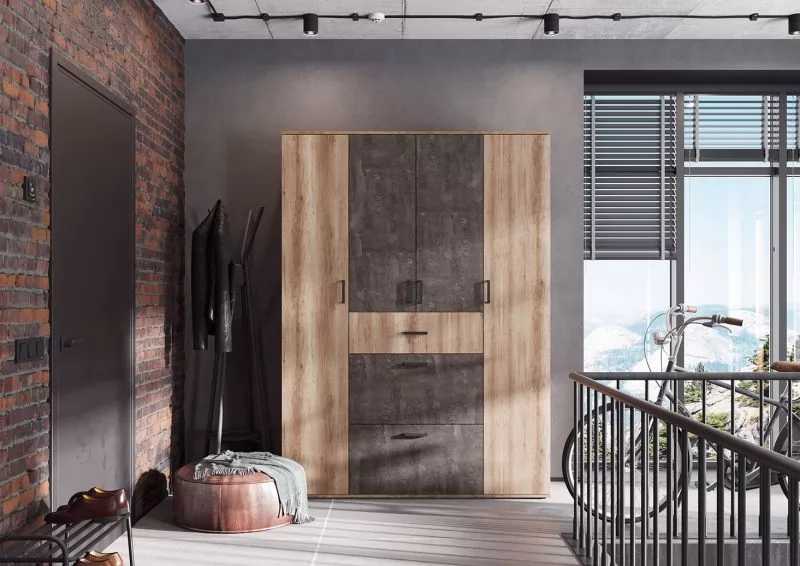НЕЛЬСОН ШК-03 Шкаф (ш1600*г500*в2200мм), ЛДСП Дуб каньон/Дуб каньон - Желез камень