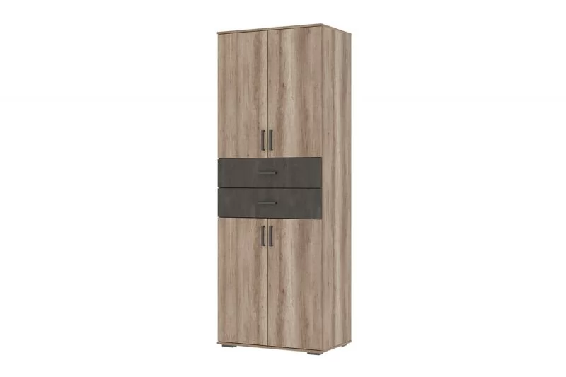 ГРЕТТА Шкаф 2С2ЗР без зерк. (ш900*г411*в2120мм), ЛДСП дуб крафт белый-антрацит/ЛДСП дуб крафт бел