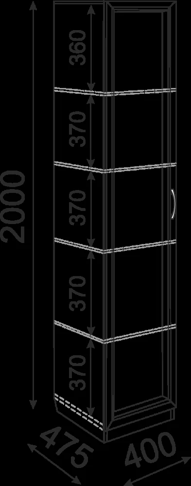 | Габариты (ВхШхГ) мм: | 2000х400х475 мм |