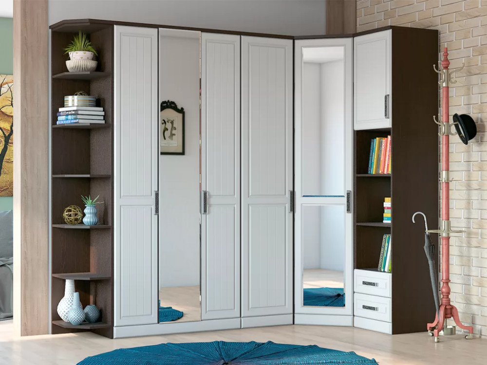 Шкаф угловой с зеркалом Венеция-1 Секция-5 Дуб сонома/Белое дерево