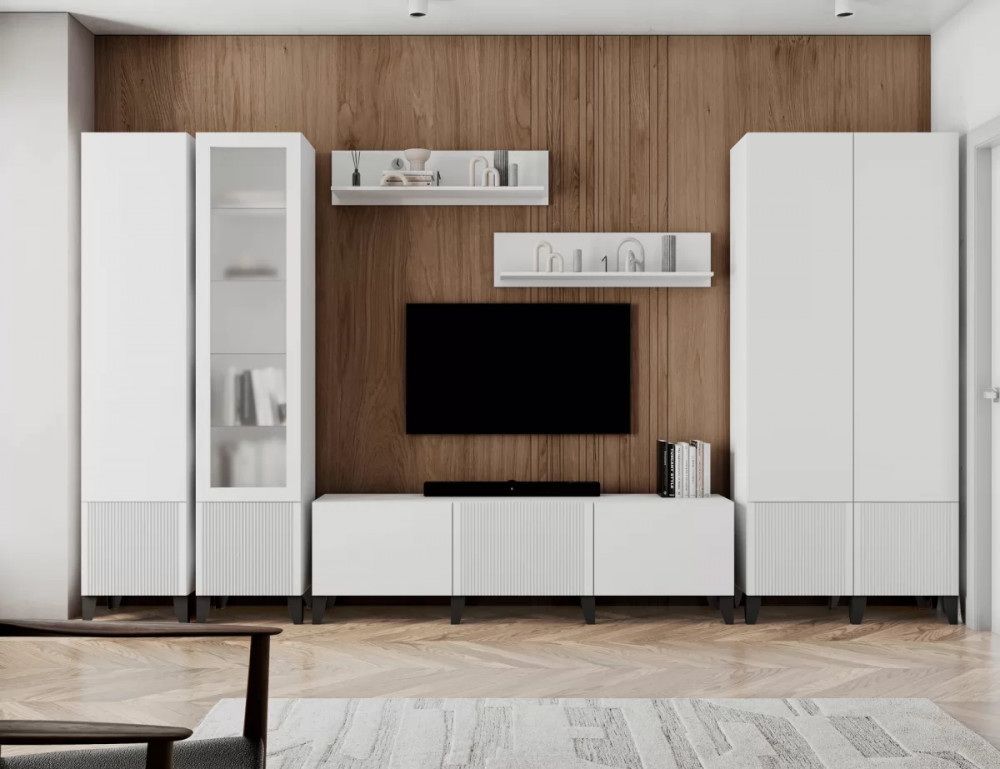 РЕЯ РГТ Тумба ТВ (без опор) (ш1800*г380*в399мм), ЛДСП Белый/ МДФ белый снег