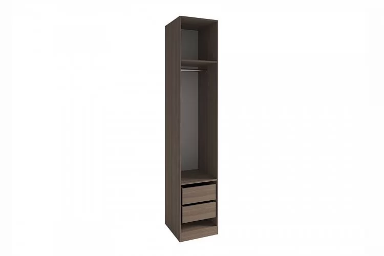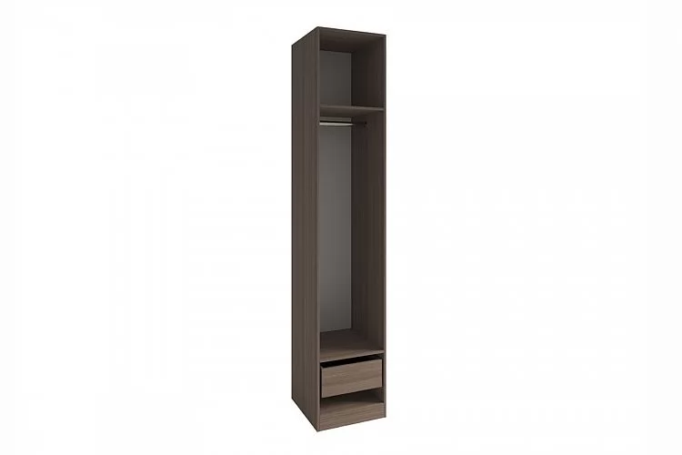 Базовая комплектация шкафа: корпус, 2 полки, 2 ящика и одна штанга. На каждый шкаф допустима установка от 1 до 4 шт. ящиков. Фасады, ящики и дополнительные полки или шанга к шкафу приобретаются отдельно.