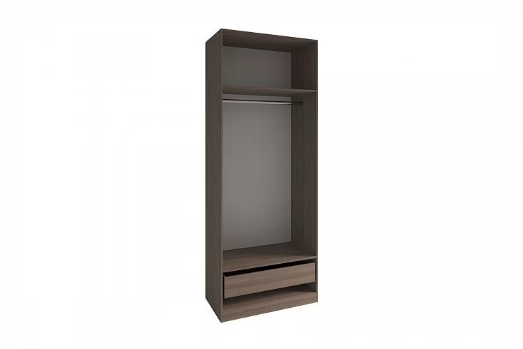 Базовая комплектация шкафа: корпус, 2 полки, 2 ящика и одна штанга. На каждый шкаф допустима установка от 1 до 4 шт. ящиков. Фасады, ящики и дополнительные полки или шанга к шкафу приобретаются отдельно.