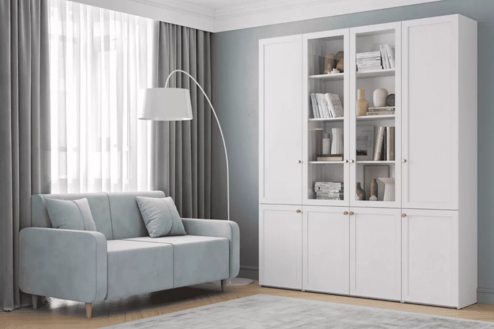 Шкаф комбинированный "Визит-4" Белое дерево/холст белый/Рамух/Левый