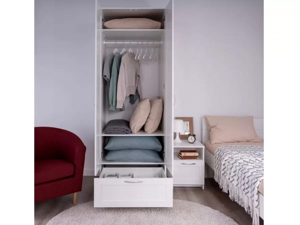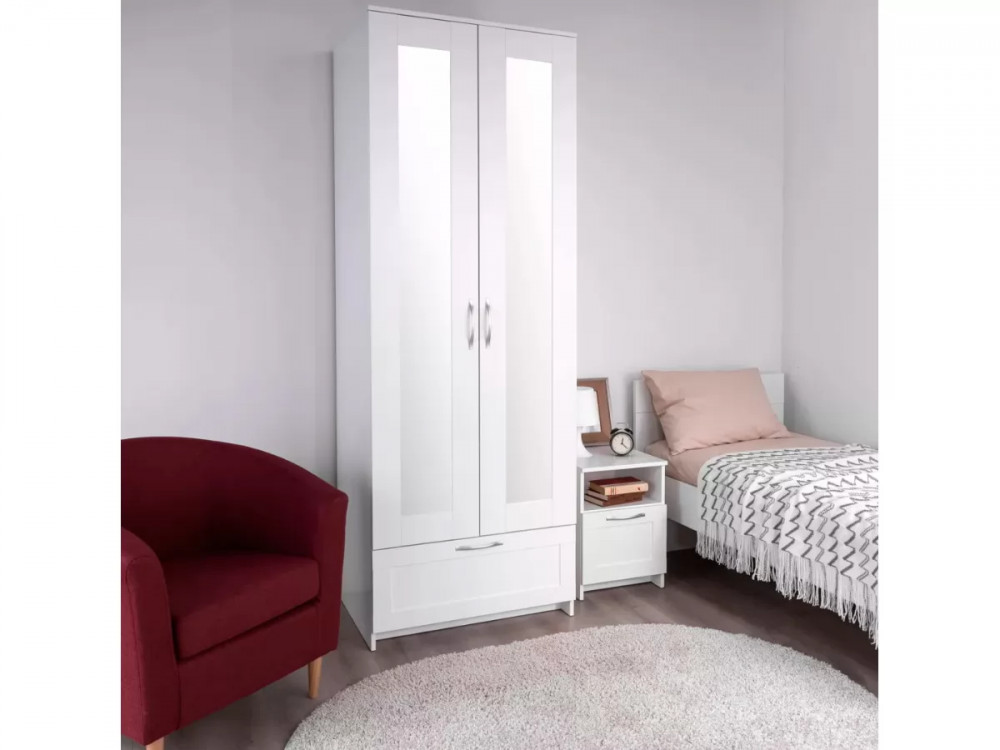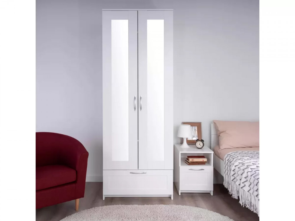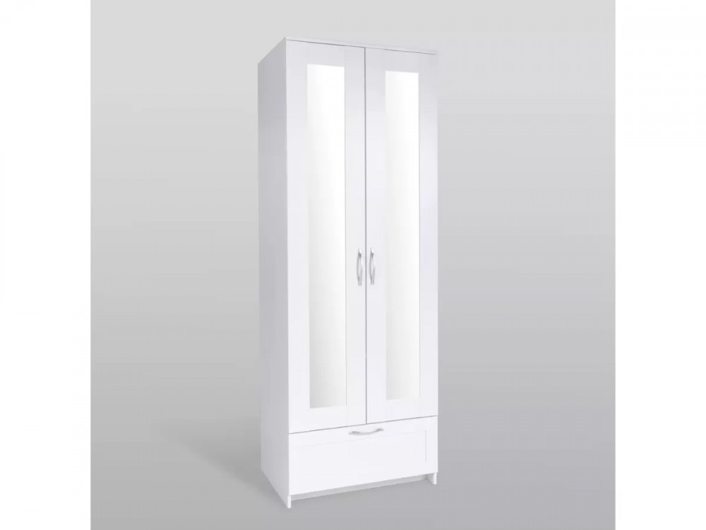 Шкаф 2 двери и 1 ящик 78х59х220 Сириус белый с 2 зеркалами