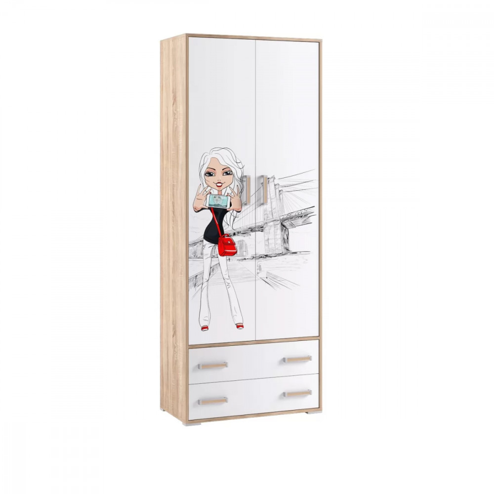 — Корпус выполнен из ЛДСП цвета «Дуб Сонома», внутренние фасады двух видов: Белый с тиснением «Древесные поры» или Белый с тиснением «Древесные поры» + фотопечать.