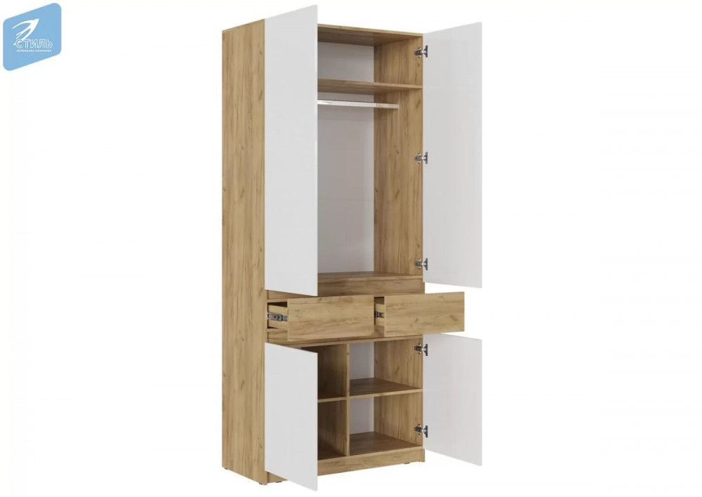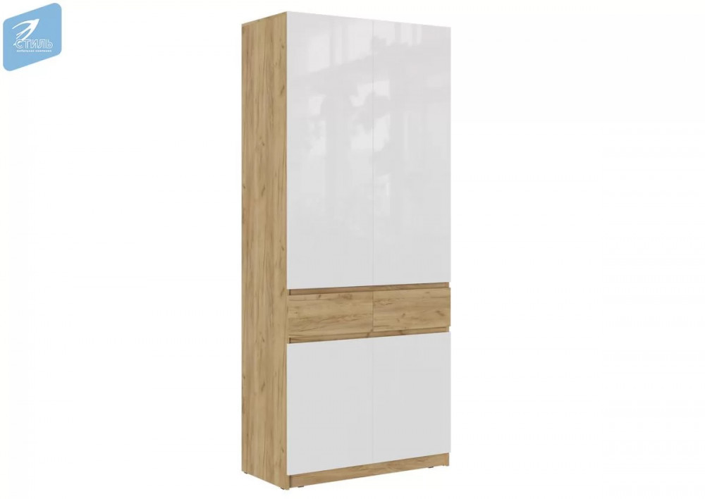 Шкаф 2-х створчатый ШК-001 "Бостон" дуб крафт золотой/Белый глянец
